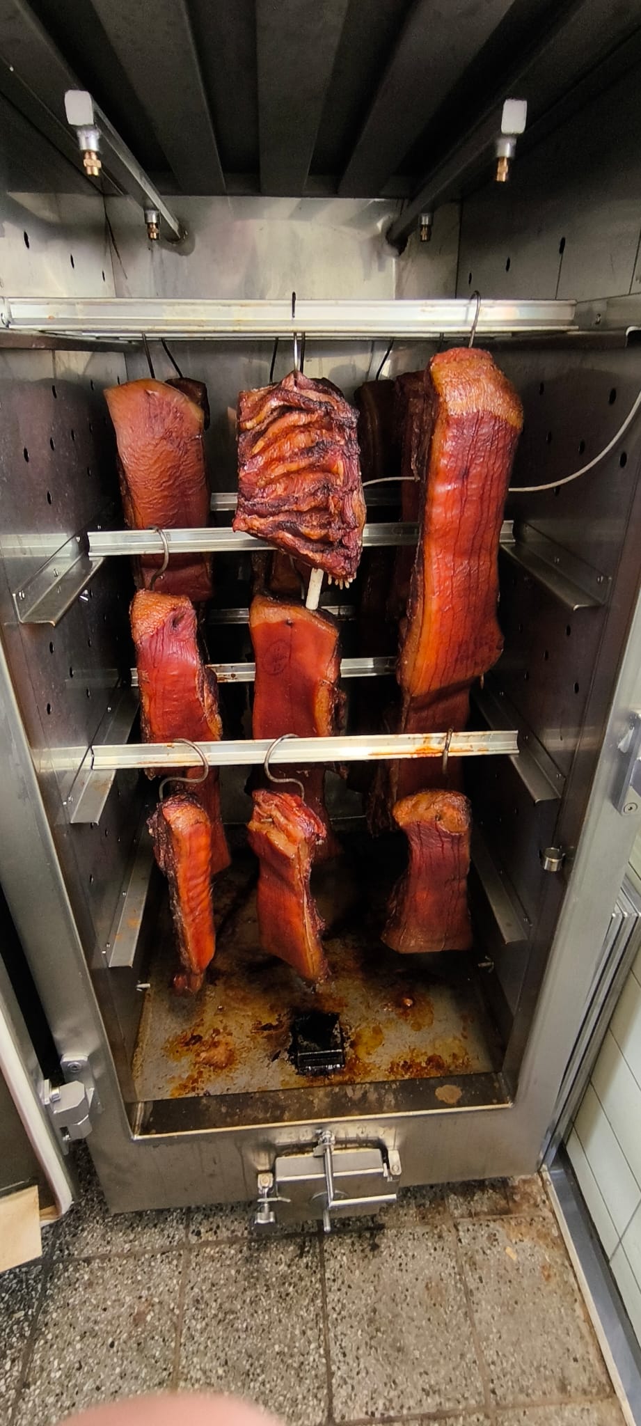- Teplý pult - denně pečeme kuřecí čtvrtky, křídla, plněné závitky ze stehenních řízků, pečená sekaná, uzená kolena